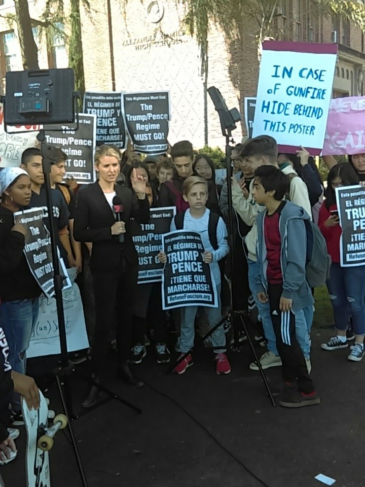 I was happy to see great pictures and some video of RefuseFascism.org mixing it up with students in Los Angeles. I know we are smaller than we want and need to be, but really pushing out to these young people right now, uniting with them but also challenging them to broaden their horizons and fight for all the people who are living in the “line of fire” under the Trump/Pence fascist regime, is part of how we TRANSFORM this situation. We should dive into this moment as a part of our overall work to get in a position to drive out this regime by late summer.