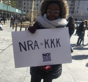 Later, I went out to Union Square and almost all the high school kids who I talked to participated in the walkout. One young woman who went to a school for children of the UN diplomats said they had done an action in the parking lot of their school but there was controversy because the students really wanted to get out there and march, and felt stifled by not being allowed to. She was from France and she said, we protest there all the time but at the same time, we need to reach those in power to make them listen to us.