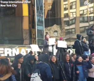 Someone from the Revolution Club spoke at the rally at Prospect Park and a high school RefuseFascism.org organizer spoke at her school and announced a meeting after school. At first when she began speaking, people listened quietly, but when she started talking about the crimes the U.S. has committed around the world and throughout history – from slavery and genocide to lynchings and the invasion of Iraq, Vietnam, Haiti and other places – the crowd of several hundred students erupted in cheers. It’s not what they came expecting to hear, but when they heard it they felt it deeply. The only bigger cheer she got was when she called on her peers to join her in driving out the Trump/Pence Regime.